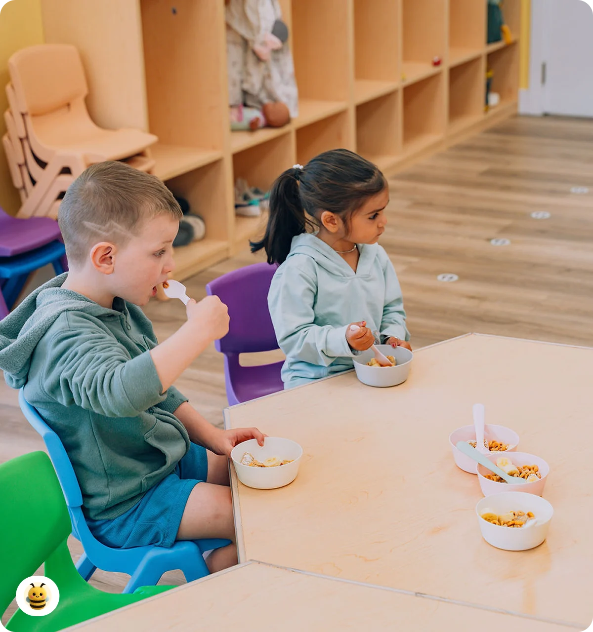 At B Kids Daycare, we make mealtimes stress-free by providing nutritious lunches and snacks every day, so parents can leave the lunch-packing to us.